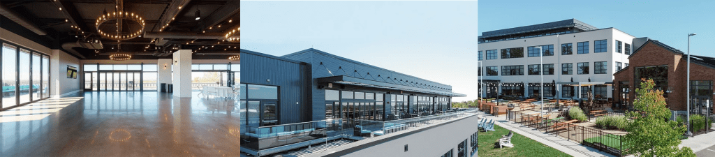 The Peak at Edison is a modern event space on the eastern side of Columbus, OH, in Gahanna. It is on the top floor of the event space, with sweeping views across the greater Columbus region. The Columbus city skyline can be seen along the western horizon. Due to the close proximity to the John Glenn Columbus International Airport, airplanes will fly directly overhead, adding some intrigue to the venue. The wedding Reception and Ceremony will occur on the rooftop patio of this event space, with indoor areas and a large wrap-around balcony with accordion doors. There is a large parking lot, elevator access, and modernized/accessible bathrooms.
